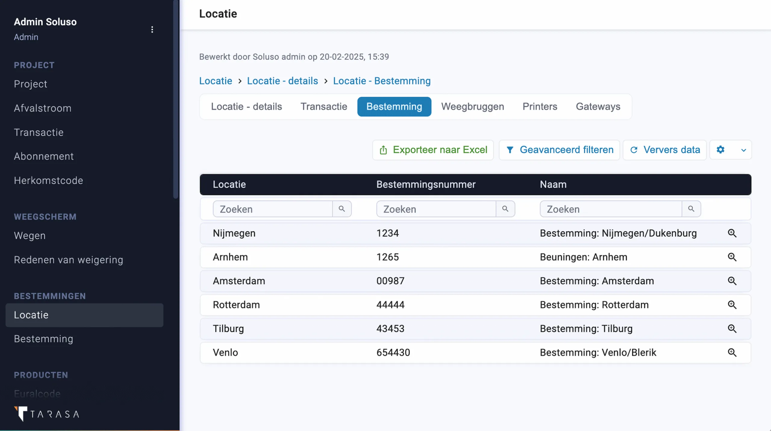 Gebruikers exporteren met één klik data naar Excel. Handig voor rapportages, analyse of integratie met andere tools. Je bepaalt zelf welke kolommen beschikbaar zijn voor export en welke rollen toegang krijgen. Zo houd je grip op datagebruik, terwijl klanten hun data vrij kunnen gebruiken.